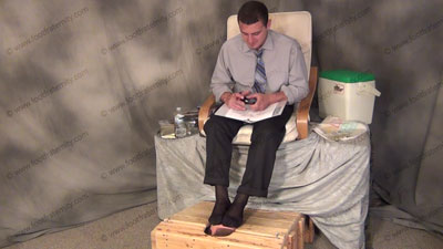 its WSOX Radio and Dr. Gridiron wrote the book on “Straight Guys Rule” and had a doctorate in Psychology and Male Domination with a Sports Minor In slacks, dress shirt, sweaty black sheer socks, Dr. Gridiron takes questions from his listeners while on the air and while having a slave at his socked feet. He gives his advice, and comments on the power that Macho Jocks have over foot slaves. He is laughing....... (click video link to see full description)