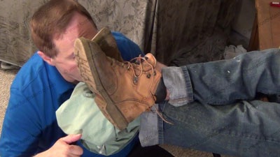 In jeans, boots, white with color gym socks, Graham is laughing and sitting back with his slave at his foot stool. Sissy serves his feet to be totally embarrassed and humiliated as he torments and teases and mocks his slave! Slave is kissing the socked feet, adoring socked toes and feet, smelling them, worshiping the straight stud's socked feet, then bare foot action and forcing slave to humiliate himself w....... (click video link to see full description)