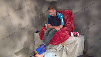In casual clothes, various sox; Master Riley has his slave on the floor to serve his feet in these close up only scenes from the above films on a different angle. Really Hot to see it close up!