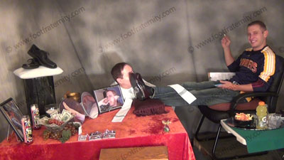 These wonderful views are from other cameras of close ups from his films 8666-8667-8668, of this Cocky, Jock who is teasing his slave & the need to worship his feet and socks sniffed while he torments & mocks his foot slave who is kneeling at his feet. He orders foot worship, teases, commands his slave; mostly socked foot with bare foot adoration and mocking & humiliation all his slaves.