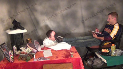 In casual clothes, sheer cap toe sox; Master Riley has his slave serve his feet in these close up only scenes from the above films on a different angle. Really Hot to see it close up!