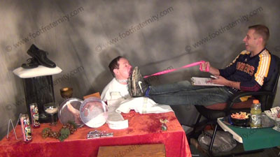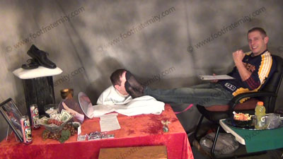 These wonderful views are from other cameras of close ups from his films 8664-8665-8666, of this Cocky, Jock who is teasing his slave & the need to worship his feet and socks sniffed while he torments & mocks his foot slave who is kneeling at his feet. He orders foot worship, teases, commands his slave; mostly socked foot with bare foot adoration; dog collar; mocking & humiliation all his slaves.