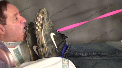 The priest is ready for more when Jock Riley wears his muddy baseball cleats & puts them on the altar to be licked clean! then his socks; then bare feet; to humiliate and for worship by the priest. He commands foot worship. He gives his orders, and teases on the power that Macho Jocks have over foot slaves. He is mocking & sitting at the altar with the priest slave kneeling to his feet. Priest kisses & serv....... (click video link to see full description)