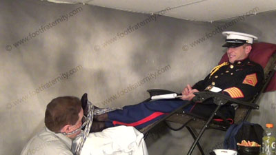 In his dress blues Marine Uniform & wearing his sweaty sheer socks, these three views are of this USMC Riley sitting in his gravity chair with his bitch kneeling at his feet while he is having his socks sniffed & worshiped, while he takes cash from the sissy for falling in love with his feet! Then bare foot worship & gifts given to the Marine! Head used as a foot stool! He teases and mocks his foot slave wh....... (click video link to see full description)