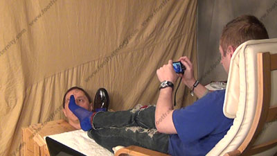 Mick in gold toe dark socks and Riley in gym socks, are sitting in an easy chairs with their feet in sissy’s face which are to be totally worshiped and served and praised for them just ignoring him while playing video games. Straight guys love to do this. They are best friends and they mock the slave while he is kissing their feet, adoring socked toes, smelling them, worshiping the straight stud's socked....... (click video link to see full description)
