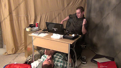 Download File: RILEY AT HIS DESK WITH FOOT SLAVE UNDERFOOT