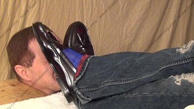 In loafers, sweaty royal blue sheer socks, Riley is sitting over his slave who is locked in the box with his feet shoved in the face, to be totally embarrassed & humiliated as he dominates, teases and ignores his foot slave. Then sissy has to kiss and sniff the dirty socked feet & toes, smelling them; worshiping the straight stud's socked feet as he mocks; plays on his lap top computer & commands his slave ....... (click video link to see full description)