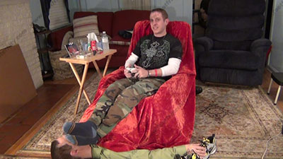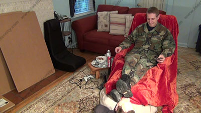 In Air Force pants and sweatshirt as this hot straight stud ignores his foot slave as he plays video games while his slave is serving at his feet. He likes to tease with his sweaty bare feet and hold them in the slave's face and ignore him while he is playing the games! He loves this idea to make our place under a straight guy's feet as he relaxes. Riley is sitting on his easy chair with his slave on the fl....... (click video link to see full description)