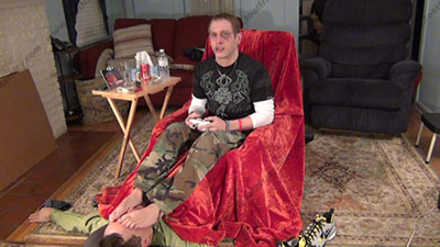 In cargo pants, sweatshirt, thread bare white crew socks as this hot straight stud ignores his foot slave as he plays video games while his slave is serving at his feet. He likes to tease with his sweaty socked & bare feet and he lays on the sofa with slave kneeling at this feet for worship! He loves this idea to make our place under a straight guy's feet as he relaxes. He intently plays this games making m....... (click video link to see full description)