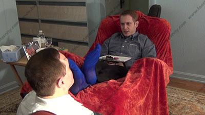 In jeans, sweaty designer grey socks with blue cap toes as this hot straight stud teases his slave for serving at his feet. He likes to tease with his feet and hold them in the slave's face! He loves this idea of a place for sissys to come to serve his feet. He gives orders & commands for worship and service to this socked and bare feet. Riley is sitting back on the Lazy boy with his slave at his feet for w....... (click video link to see full description)