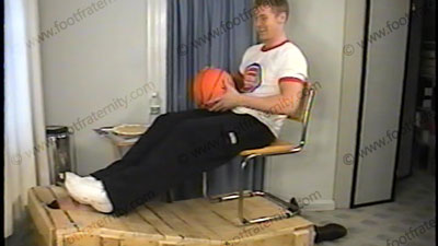 In basketball shorts, muscle shirt, no socks and bare feet in sneakers, this stud jock basketball player has his shoes licked while he reads to his room mate, Brian, the "Heterosexual Guy’s Rule Book and Laws for Sissys". He laughs at the laws, which were set up by straight jocks for sissys to always obey. He makes comments about them and decides how the slave must obey them as he has his sneakers licked,....... (click video link to see full description)