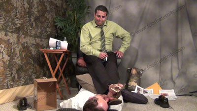 In dress shirt, tie, wing tips & thin blue sheer nylon socks, this hot straight stud is on easy chair with slave on the floor, pinned at his feet while Roberto still has slave worshipping his feet into full submission. Sissy serves at his sweaty bare feet then sniffs the sweaty socked feet; Roberto laughs, knowing that he rules & has power over the slave at his feet who is totally embarrassed when being un....... (click video link to see full description)