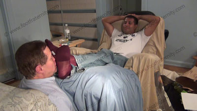 In jeans, sneakers & sheer to toes dark socks, Roberto has slave chained to his feet as he lays back in his new chair with feet stretched out in the sissy's face for service; worshipping & sniffing the sweaty socks, then the sweaty macho, meaty bare feet as Roberto responds to a fan mail from a cuckold guy, while his feet are worshipped, foot teasing, licking, sucking & worship; smoking; toe licking/sucking....... (click video link to see full description)