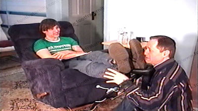 Different views of the previous scene. Close up and hot. After work, Justin, in jeans, casual shoes & dirty white socks relaxes on the easy chair with his foot slave caught in his sissy trap for the service of his sweaty socks then bare feet. During service, he is commands, controls, dominates, laughs & tells of his thoughts as he teases his foot slave verbally & with his socked, then bare feet. Slave start....... (click video link to see full description)