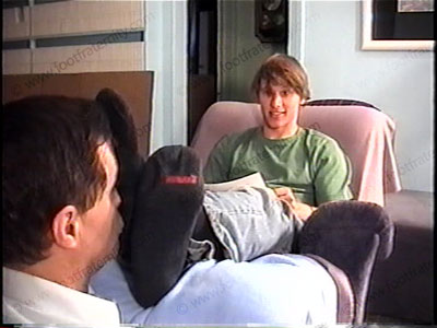 After work, Justin, in jeans, dirty sneakers & dirty white athletic socks relaxes on the easy chair with his foot slave lying beneath his feet under the chair for the service of his sweaty socks then bare feet. During service, he describes how he does all of this foot domination to bitch foot slaves & talks and teases with his orders, commands & tells of his very intriguing thoughts about having foot slaves....... (click video link to see full description)