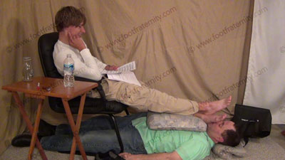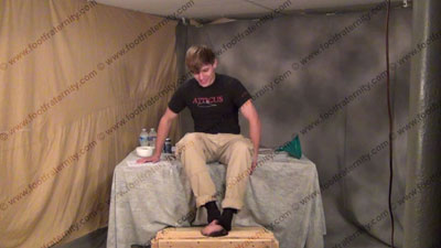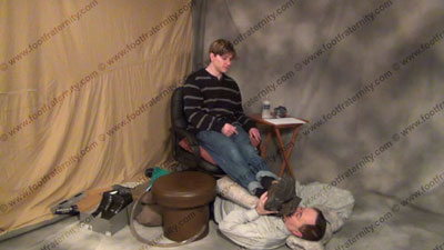 After work, Justin - a 20 year old high jock, in khaki pants, sneakers & sweaty dark work out Adidas socks relaxes on the easy chair with his foot slave lying beneath his feet under the chair for the service of his sweaty socks then bare feet. During service, he talks and teases with his new orders, commands & tells of his very intriguing thoughts about having foot slaves as he teases his foot sissy verbal....... (click video link to see full description)