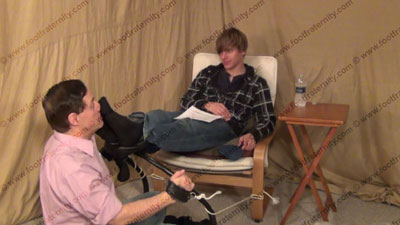 a teenage college guy in jeans, T-shirt, black shoes & black sweaty thick socks relaxes on the easy-boy chair, feet up, with his foot slave beneath his feet for the service of his sweaty socks & bare feet. During worship, he tells his thoughts & as he teases his foot slave verbally & with his socked and bare feet. He enjoys the power of being a Straight jock who looks like Justin Bieber, with slaves who now....... (click video link to see full description)