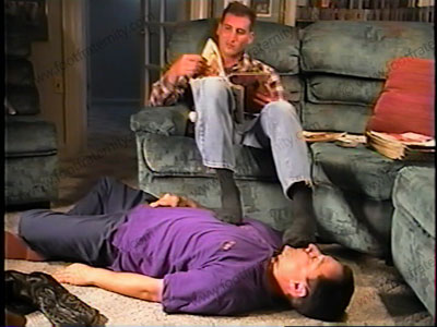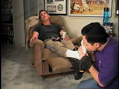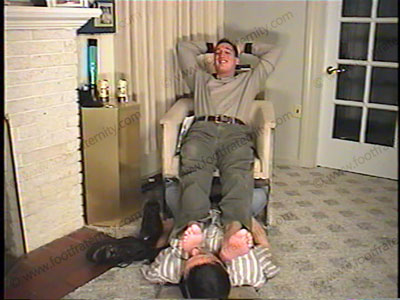 This cocky stud dominates & embarrasses his slave by making a tape for his brother to watch and see what power he has as he dominates his foot slave. His feet are licked, kissed, sucked, massaged etc. His sweaty dark socks are sniffed, licked & he humiliates his slave Filled with commands, hot talk, as he smokes cigarettes, using the slave's mouth for an ash tray. He shows all the "tricks" his slave will do....... (click video link to see full description)