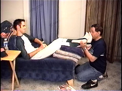 This 18 year-old gets into embarrassing & teasing a foot sissy by forcing him to lick his sneakers, sniff sweaty white socks, service bare feet, after a basketball game. Then follow every order this athletic jock gives as he responds to the tape that he showed to his basketball team. While getting a buzz, he gives verbal commands & much teasing and laughing as he shows off to his buddies how funny this is. .......