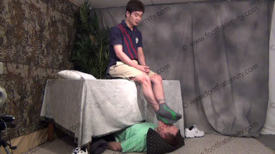 In shorts, sneakers & grey Puma gym socks, Chin Ho has slave beneath his feet as he sits over him with feet dangling in the sissy's face for service; worshipping & sniffing the sweaty socks, then the sweaty perfect bare feet as he uses his feet to play with his slave's face; responds verbally with hot talk and ideas, while his feet are worshipped, foot teasing, licking & worship; Chin Ho mocks and just watc....... (click video link to see full description)