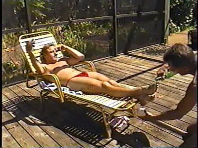 At his pool, Denton is sunning himself as his neighbor, Rory, walks in to lick his toes & caress his feet, suck toes, lick the bottoms of his feet, etc. Total foot love making & all BAREFOOT service to this stud, Denton! Then Rory opens champagne to pour Denton a glass, then has to pour the rest of the bottle over his hot, sweaty feet. Rory get to lap it up from Denton's toes. This is the way to make Denton....... (click video link to see full description)