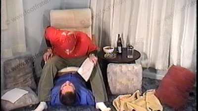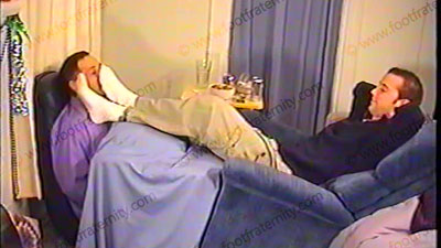 After workout at the gym, in sweaty white socks, this macho, straight jock loves to tease. Two views of this scene, one full, one close up. He rubs feet on slave’s face constantly & very verbal as he takes control. He gives a list of slave openings to be filled by Frat members to serve him. He is cocky, arrogant, macho & powerful at having foot worship & service. His has his bitch pinned to the wall while....... (click video link to see full description)