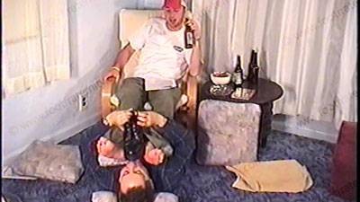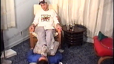 After work, macho jock Drake is dressed in khaki pants, T-shirt, white socks & Timberland boots, as he relaxes in easy chair with his foot slave pinned beneath his feet for the first service of his sweaty socks & bare feet worship. He is controlling, teasing, verbal & boasts of the power of being a Straight jock with sissys who pay to be humiliated by him while at his feet. Then bare feet & toes licked, kis....... (click video link to see full description)
