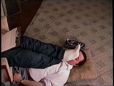 Same scene as above V-581, except this is from camera two of Close up only on his boots, sox & feet in the face.