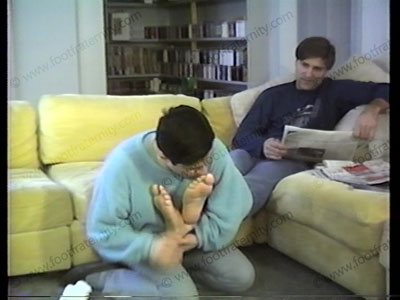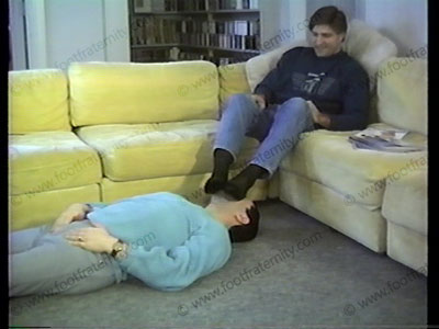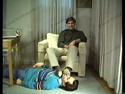 His answers show that he knows how to keep a guy at his feet. All the while, the slave is licking shoes, smelling socks, & worshipping bare feet of this blonde god! Close ups.