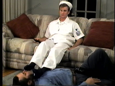 In whites, he lets buddy service his shoes, thin sheer sox & bare feet with much toe sucking and close ups of this preppy Sailor!