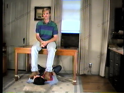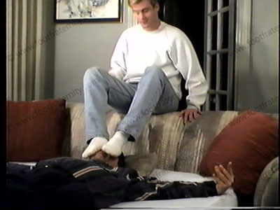 In jeans, T-shirt, sweat sox and brown suede Bass Saddle shoes, Hale forces his tied up math teacher to worship at his sox & feet. Super humiliation with dominance, cocky yuppie attitude & verbal abuse. Incredibly HOT!