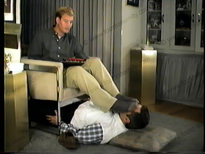 In jeans and Polo shirt, loafers and black sox, Hale gets total foot service and massage from his buddy. Sensuous, non-verbal foot love tape.