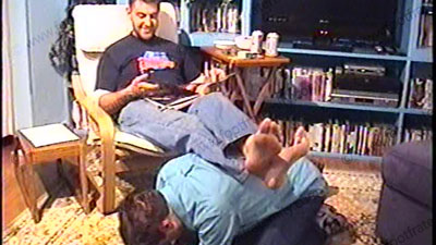 After work, Travis’s brother: redneck, super macho Master Jay is in jeans, T-shirt, dirty grey short athletic socks, & boots as he relaxes on the chair with his foot slave beneath at his feet. During a sock sniffing & service, he tells his buddy, Jason, about this new position that he is experiencing of controlling, commanding foot slaves as he reads a confession letter from his bitch. Then more foot acti....... (click video link to see full description)