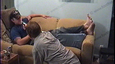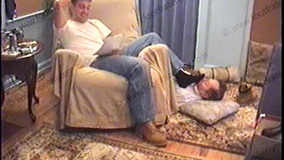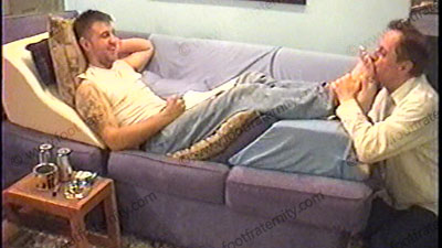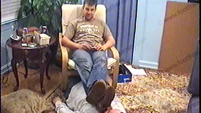 After work, he is in jeans, black sweaty socks over a pair of white sweat sock & boots as he relaxes on the recliner with his foot slave pinned at his feet for service of his sweaty socks mostly, then a bit of bare feet worship. During this worship, he reads some of his fan mail from Frat members & laughs at their submission to him as he taunts teases, humiliates & dominates his sissy slave. He is into cont....... (click video link to see full description)