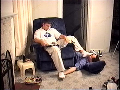 In khaki pants, boots & white sweat socks, JT shows up at the home of the cop who pissed him off, comes in to set the new rules and to put the "law" under his feet, socks & boots. He embarrasses him by much foot action, licking, toe sucking, spitting, sock sniffing, footrest & footstool to this 18 year old football star teenage jock’s socks & feet. The cop will be serving JT and his teen age buddies from ....... (click video link to see full description)