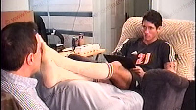After a soccer game, bare chested Juan tells how he now really feels about his feet having control of his foot slaves while forcing his sweaty blue soccer socks in the slave’s face, teasing & humiliating him. It starts with sock worship, kissing & sniffing while he tells what he really likes about this power & control. Then bare foot licking, kissing & worship of the perfect shaped young 22 year old jock....... (click video link to see full description)