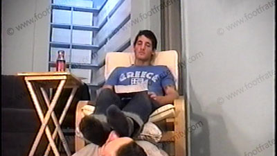 While relaxing in an easy char after a soccer game with Sean beneath his feet in this film Juan answers the interview questions for real on why he does this work for the Fraternity, his true feelings, what it’s like for a straight guy to have a man worship his feet & why he likes having a slave at his feet during the film sessions, why he said “yes” to being a Frat model and answers many other powerfu....... (click video link to see full description)