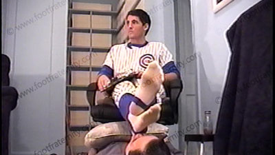 After the game, Juan sets a trap to catch a slave to be stuck serving his dirty cleats, sweaty stirrups & bare feet! In uniform, Juan relaxes after the foot slave gets caught in this Footstool trap rack while forcing him to whiff his sweaty baseball sheer socks while controlling him and making him serve at his feet which are put up on the padded tray which is level with his slave’s face. His foot slave a....... (click video link to see full description)