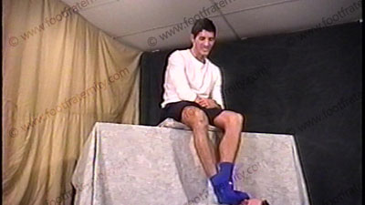 After a soccer game, no shirt, cleats, hot bare chest & royal blue Puma short sweat socks, Juan starts out with his foot slave sniffing his sweaty socks as he shoves his feet in the slave’s face who is pinned at his feet as he dominates & teases his slave during this audition film for the Dr. Phil Show on “Guys Who Make Their Boss into a Foot Slave”. He has fun & teases as he talks to Dr. Phil in the ....... (click video link to see full description)