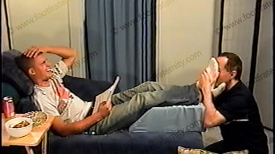 After two years, these high school pals get together & both use slave for foot worship while they talk about school, people, their past & being straight. Both in jeans, white socks, no shirts (hot chests) as their foot slave is pinned beneath their feet for the first time with these two doing a film together. Much teasing, controlling, verbal & enjoying the power they have as high school jocks. Then bare fe....... (click video link to see full description)
