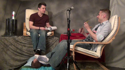 In jeans, sweaty short socks, Mick is laughing & sitting above his slave who is laying on the ground beneath his feet to be totally embarrassed & humiliated as he dangles his sweaty feet in the sissy’s face while interviewing Riley on the radio, who is doing the same to the slave. Four straight feet in one sissy’s face! Socked feet torment & tease and mocks the slave while they totally humiliate him usi....... (click video link to see full description)