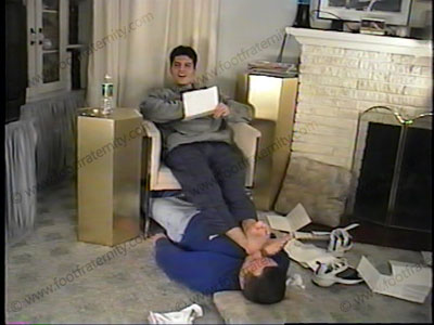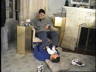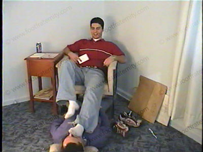 This hot 18 year old calls his slave in to lick & remove his sneakers, then sniff & kiss his white socked feet, then spend the majority of the time worshipping his bare feet. Nomar in jeans with two great views, one full view and one close up from the tops of his feet as this bare foot service is performed. He then watches his hot straight X films while using the slave as a foot kisser, foot rest, foot mass....... (click video link to see full description)