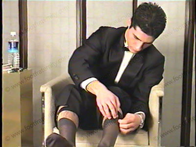 Two different views (one with close ups) of this jock teenager while he is in a tuxedo. In sheer think-n-thins & a tuxedo, he returns from the high school prom to have his patent leather loafers licked & removed for much sweaty sheer sock action. Kissing, sniffing, wiping them in the face, resting on head, etc. He is verbal throughout the scene telling how it feels to be a teenage Foot Master who has slaves....... (click video link to see full description)