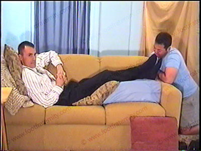 After work this arrogant, cocky, business executive & jock is in shirt & tie, straight tip lace up black dress shoes & black dress socks as he relaxes on the sofa with his foot slave kneeling at his feet for the first service of his sweaty socks & bare feet worship. During a foot massage & service, he responds to his buddy’s questions about this new position that he is experiences of controlling, command....... (click video link to see full description)