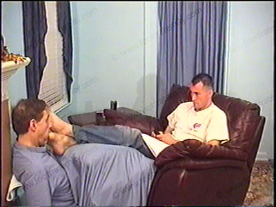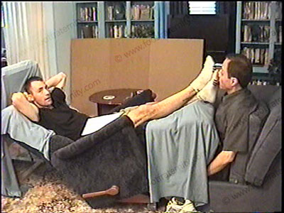 After a soccer game, this macho, stern, Jock Yuppie is dressed in jeans, soccer shoes, his white short socks with grey soles as he relaxes on the lazy boy chair with his foot slave pinned at his feet for the service to his sweaty socks & bare feet worship while he tells slave how he is to handle many situations that may come up with straight guys. He gives the rules for sissys. Then he gets a fan letter fro....... (click video link to see full description)
