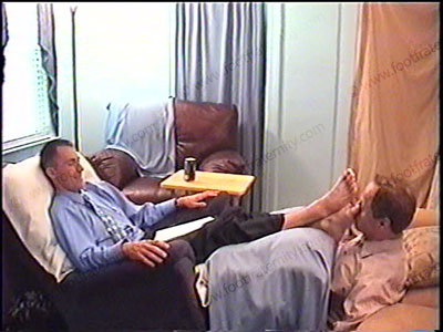 After a work, this macho Jock Yuppie is dressed in slacks, nice shirt, tie, straight tip dress shoes & gold toe socks as he relaxes on the lazy boy chair with his foot slave pinned at his feet for the service to his sweaty socks & bare feet worship while he relaxes, text mails his work & uses his brain to take control of a foot bitch. He responds to thoughts about this new position that he is experiencing o....... (click video link to see full description)