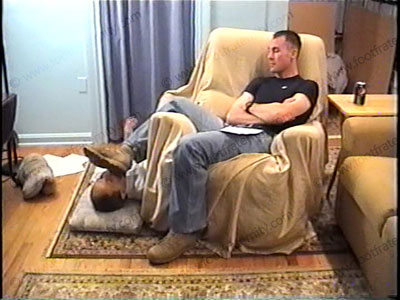In his jeans, tight Under Armor T- shirt. lace up boots & dark grey sweaty socks this really good looking guy describes a web site devoted to his feet & what foot slaves will do & why they must serve his feet & other needs. He is sitting in a chair using slave’s face as a foot wipe. With slave beneath his perfect shaped feet, for kissing, licking & service, he orders, teases, controls & has power by makin....... (click video link to see full description)