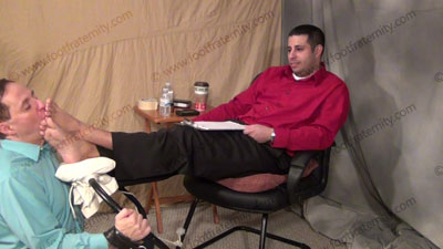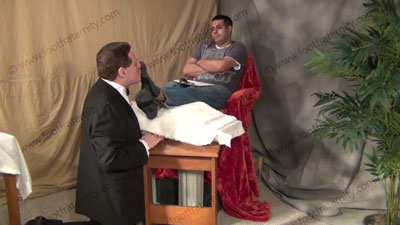 Close ups of the scenes 8620,8621 and 8626. In shorts, T-shirt, sheer cap toe sox; Master Roberto has his slave serve his feet in these close up only scenes from the above films on a different angle.