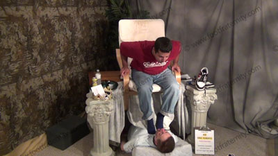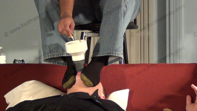 In jeans, sneakers, sweaty Under Armor sport socks, as he has slave at his feet the whole time to torment him with his sweaty socked feet; He torments with his feet in the sissy's face; then does it with his sweaty bare feet in the nose. He talks about being a straight guy who gives orders to slaves, answers questions about blackmail; barefoot sniffing, kissing, worship; he has slave shave the hair from his....... (click video link to see full description)