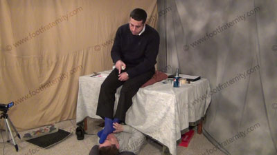 In sheer royal blue socks, and bare foot, we have a different full camera view of three scenes from Roberto 6973-74-75-76 in order from the same day of filming, of him being worshiped. For those who like to see the same view but 2 hours of different action, this is for you. His feet are sensational! They totally control and rule. All different scenes on this film, no repeat from another angle. Two hours of hot and erotic Roberto’s socked and bare feet as they are worshiped.